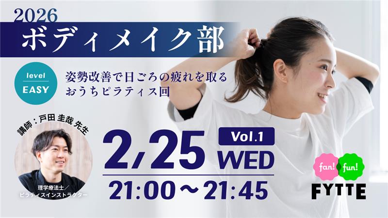 「しっかり寝たはずなのに、なんだか体が重い」「肩や首がこわばって、ずっと疲れが残っている」そんな“重だるい疲れ”を感じていませんか? 今回のボディメイク部は、姿勢を整えることで、体の緊張をゆるめ、疲れを抜いていくおうちピラティスのクラスです。講師は、理学療法士として体のしくみを熟知し、姿勢改善を得意とする戸田圭哉先生。