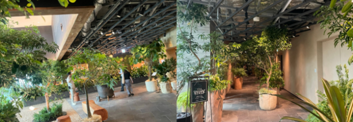 こちらは、LUFTBAUM(ルフトバウム)の28階の様子。都心の商業施設であることを一瞬忘れて心癒されていくような、目にもやさしいグリーンの世界に包まれています。ショッピングで歩き疲れたあと、パートナーの買いものが長くてため息が出そうなとき、ふらっと立ち寄って心穏やかな時間を設けるのもいいかもしれません。