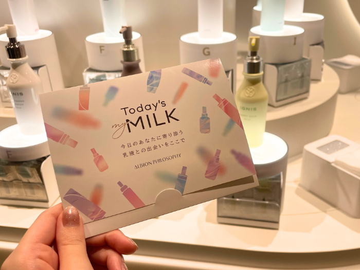 ●デジタルチェックを行い、今日の肌や気分に合わせた乳液を選び、サンプルを持ち帰ることができる「Today’s my MILK」