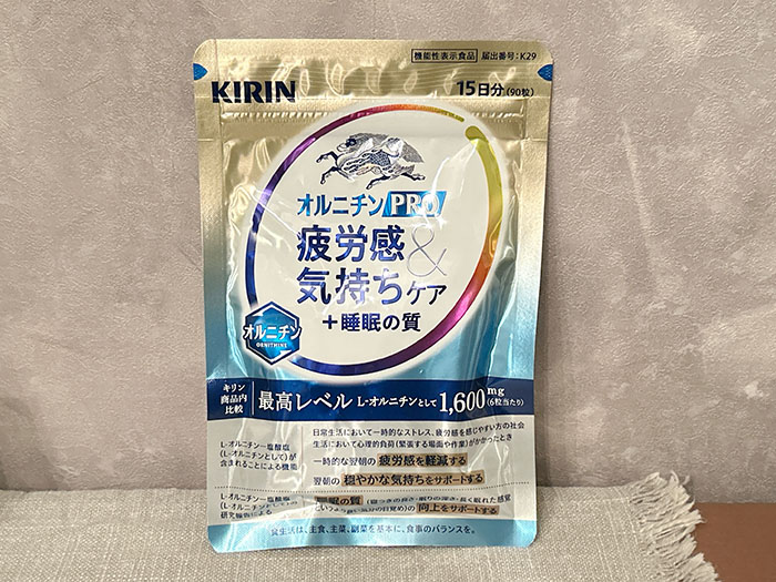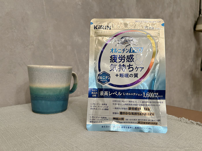 そんな私が、忙しさのピークだった年末に試してみたのが、「キリン オルニチンPRO 疲労感&気持ちケア+睡眠の質」。