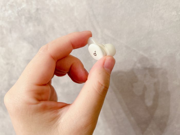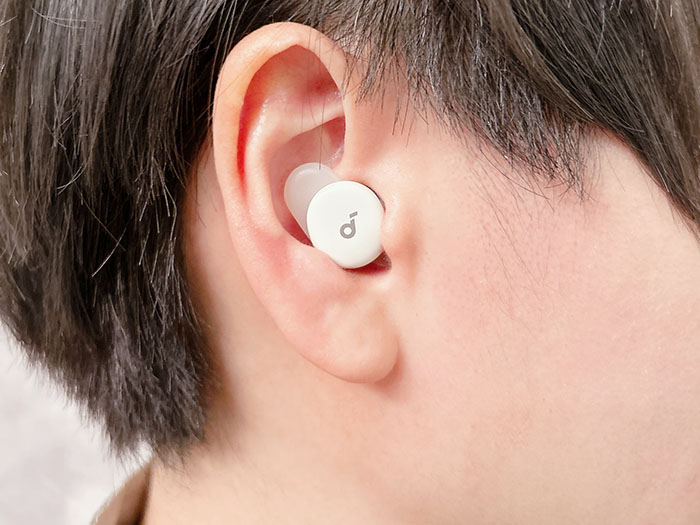 実際に装着して驚いたのが、横向きに寝た際の快適さ。通常のイヤホンだと枕に圧迫されて耳が痛くなることがありますが、「Soundcore Sleep A30」(以下、Sleep A30)はノズルが短く本体が非常にスリムなため、耳の穴にすっぽりと収まり、枕との干渉がほとんどありません。ソフトシリコンと独自の軽量ウィング設計が、まるでオーダーメイドのようなフィット感を実現しています。